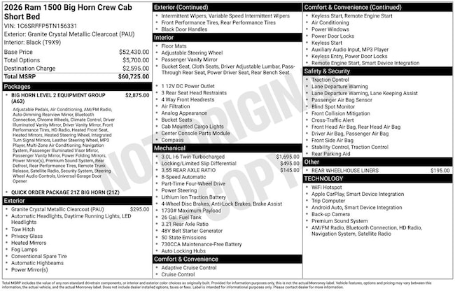 Roadside warranty 60 month/60,000 miles |