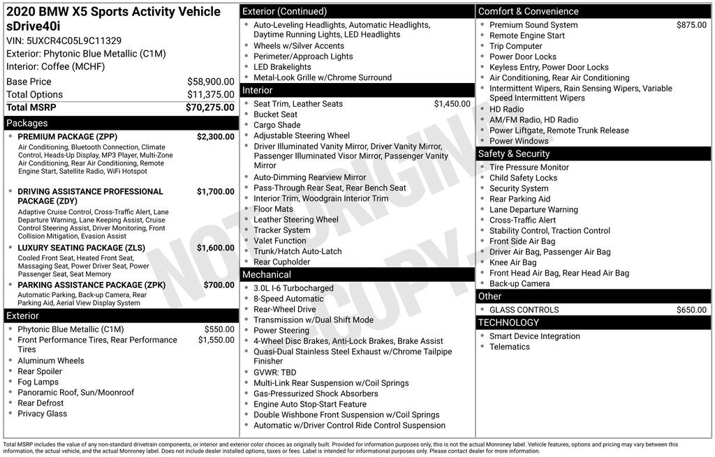 2020 BMW X5 sDrive40i RWD Clean CARFAX.