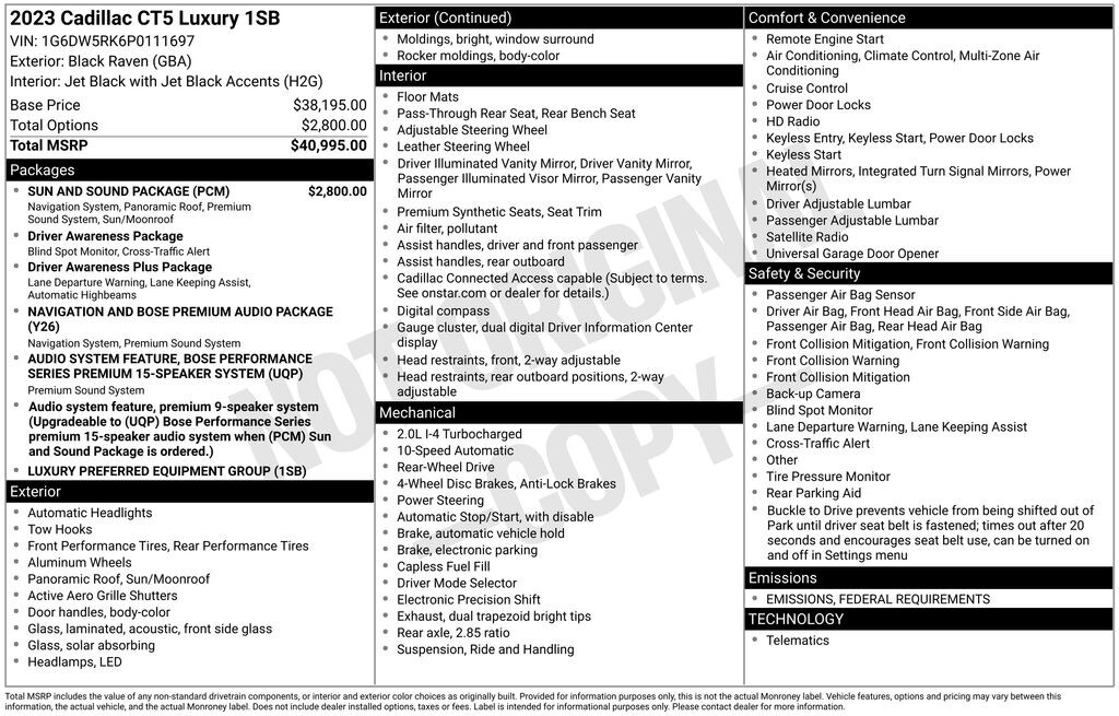 2023 Cadillac CT5 Luxury RWD Clean CARFAX.
