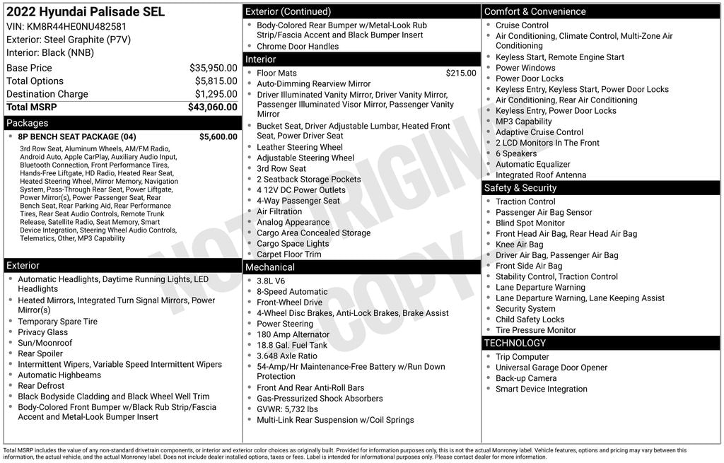 Used 2022 HyundaiPalisade SEL SUV FWD