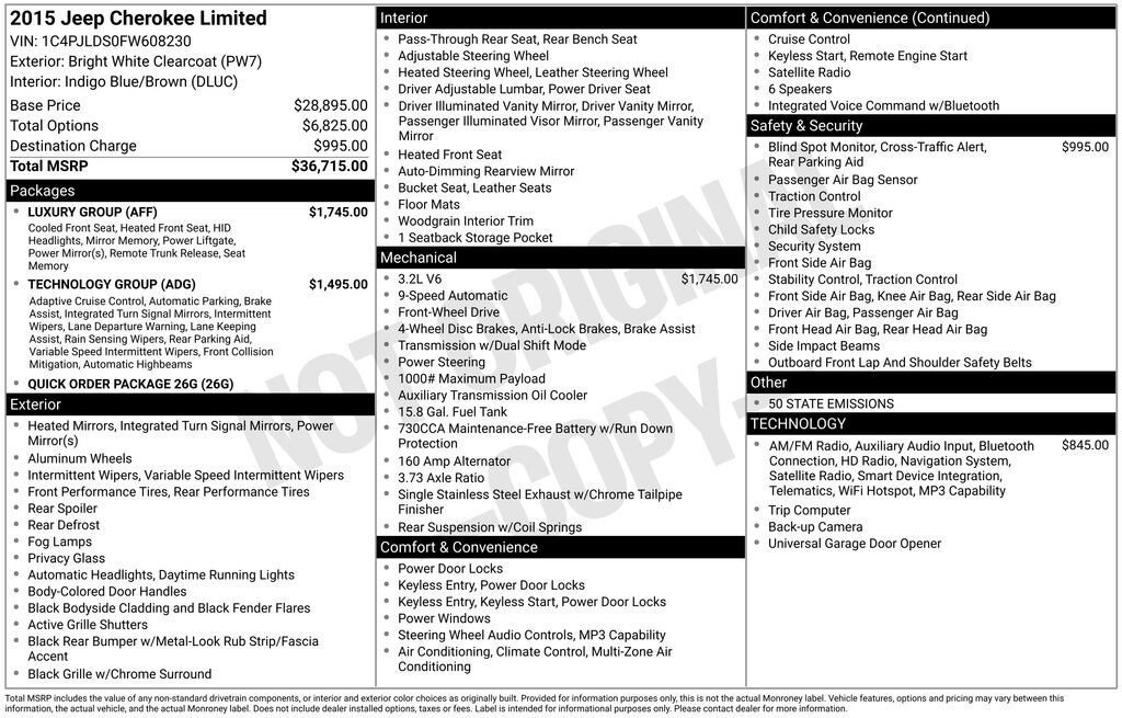 - Radio: Uconnect 8.4AN AM/FM/SXM/HD/BT/NAV$845