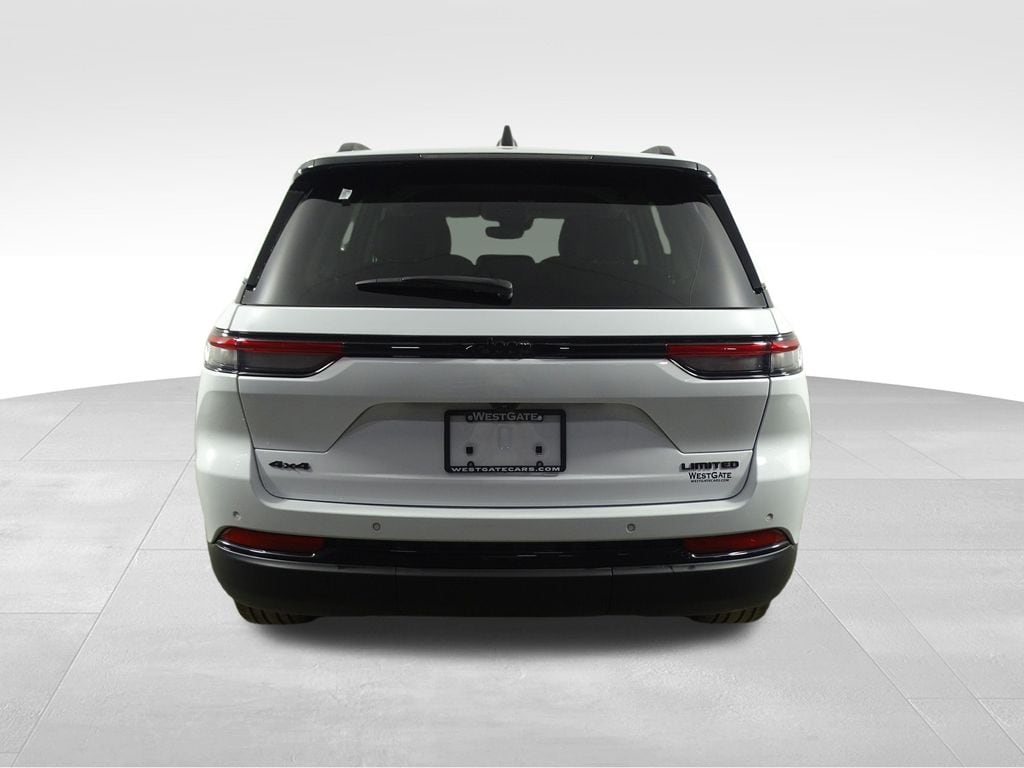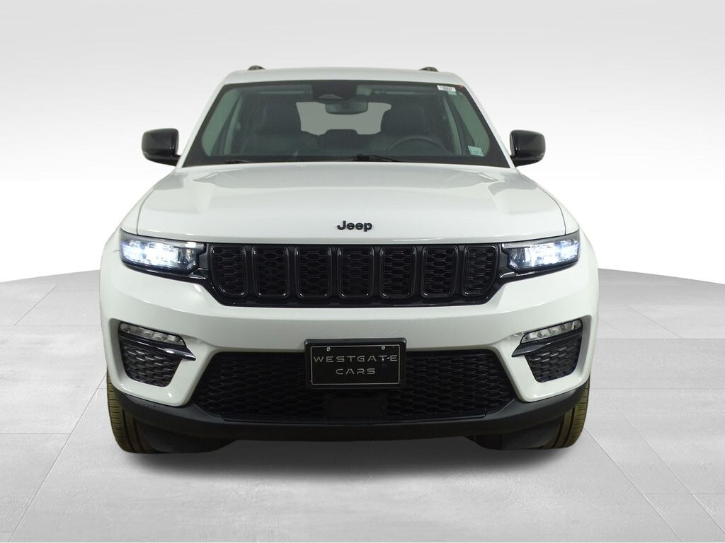 Bright White Clearcoat 2023 Jeep Grand Cherokee Limited 4WD 8-Speed Automatic 3.6L V6 24V VVT 4WD, 3.45 Rear Axle Ratio, 4-Wheel Disc Brakes, 6 Speakers, ABS brakes, Active Noise Control System, Air Conditioning, Alloy wheels, AM/FM radio: SiriusXM with 360L, Anti-whiplash front head restraints, Audio memory, Auto High-beam Headlights, Automatic temperature control, Black Appearance Package, Brake assist, Bumpers: body-color, Capri Leatherette Seats, Compass, Delay-off headlights, Driver door bin, Driver vanity mirror, Dual front impact airbags, Dual front side impact airbags, Electronic Stability Control, Emergency communication system, Four wheel independent suspension, Front anti-roll bar, Front Bucket Seats, Front Center Armrest w/Storage, Front dual zone A/C, Front fog lights, Front License Plate Bracket, Front reading lights, Fully automatic headlights, Garage door transmitter, Gloss Black Exterior Accents, Heated door mirrors, Heated front seats, Heated rear seats, Heated steering wheel, Illuminated entry, Knee airbag, Low tire pressure warning, Memory seat, Molded In Color Black/Gloss Black Roof Rails, Navigation System, Normal Duty Suspension, Occupant sensing airbag, Outside temperature display, Overhead airbag, Overhead console, Panic alarm, ParkView Rear Back-Up Camera, Passenger door bin, Passenger vanity mirror, Power door mirrors, Power driver seat, Power Liftgate, Power passenger seat, Power steering, Power windows, Quick Order Package 22E, Radio data system, Radio: Uconnect 5 Nav w/10.1" Display, Rear anti-roll bar, Rear reading lights, Rear window defroster, Rear window wiper, Remote keyless entry, Security system, Speed control, Speed-Sensitive Wipers, Split folding rear seat, Spoiler, Steering wheel mounted audio controls, Tachometer, Telescoping steering wheel, Tilt steering wheel, Traction control, Trip computer, Turn signal indicator mirrors, Variably intermittent wipers, Voltmeter, Wheels: 18" x 8" Fully Painted Aluminum, Wheels: 20" x 8.5" Gloss Black Painted Aluminum, 4WD.
