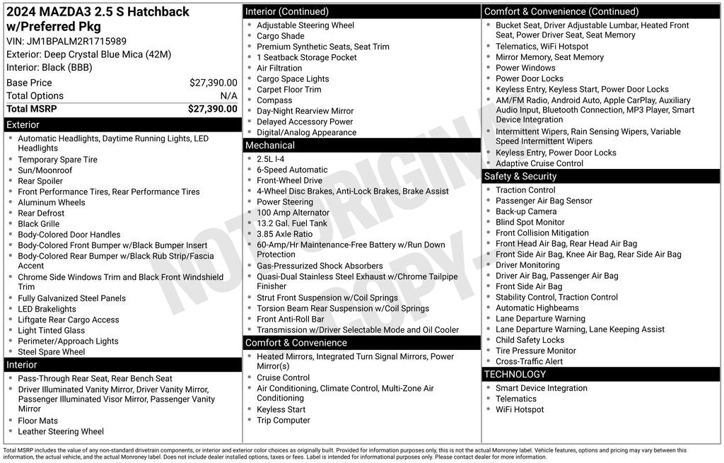 2024 Mazda Mazda3 2.5 S Preferred Package FWD Clean CARFAX. CARFAX One-Owner.