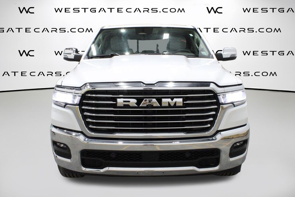 Slide into the driver's seat and you'll be surrounded by premium leather-trimmed bucket seats with heating and ventilation, plus a heated steering wheel to keep you comfortable in any weather. The Uconnect 5 infotainment system with a massive 12-inch touchscreen puts navigation, connectivity, and entertainment at your fingertips. And with features like the Laramie Level 1 Equipment Group, you'll enjoy added conveniences like remote tailgate release and rain-sensing wipers.