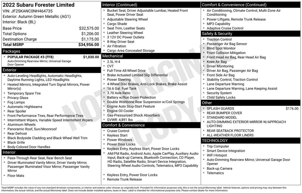 Experience the perfect combination of versatility, safety, and comfort with this 2022 Subaru Forester Limited. With 79,565 miles and a clean Carfax, this all-wheel-drive SUV is ready for any adventure, whether its city streets or weekend getaways.