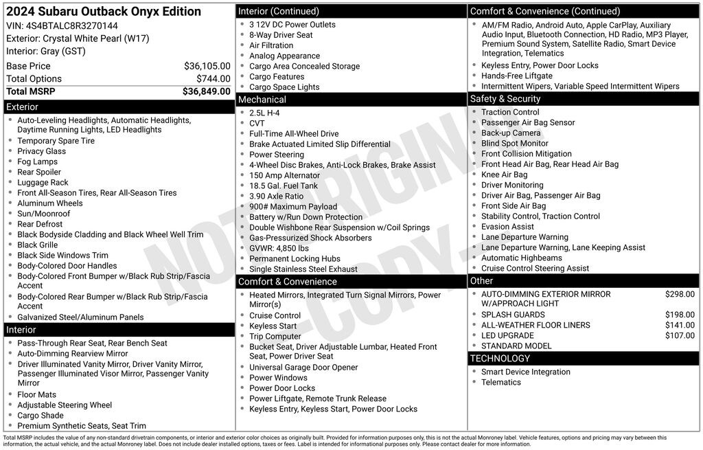 2024 Subaru Outback Onyx Edition AWD Clean CARFAX.